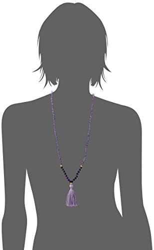 Hand-knotted faceted 6mm amethyst stones make up this 30 inch mala necklace with 3 18kt gold plated lotus beads and 2.5 inch silk tassel.