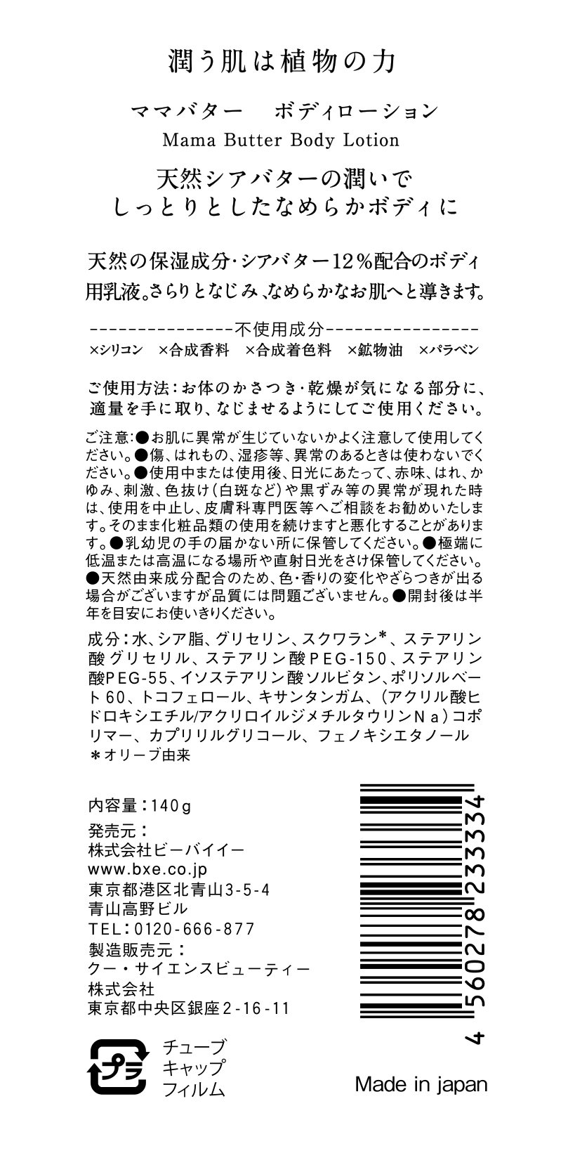 Lotion gentle to your skin packed with plant-derived ingredients.