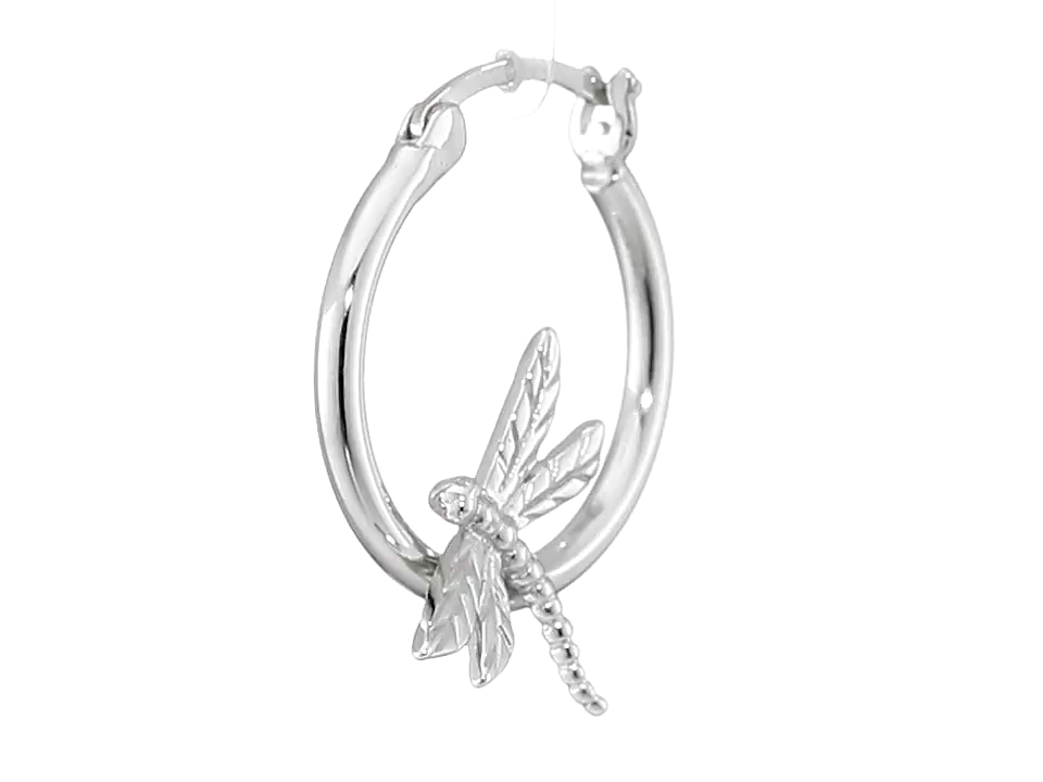 Rhodium Plated Sterling Silver Dragonfly Hoop Earrings