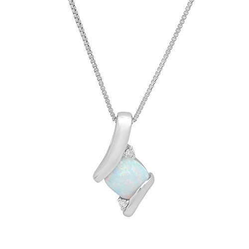 Timeless and elegant pendant necklace features an alluring, cushion-cut, Created Opal gemstone and diamond accents