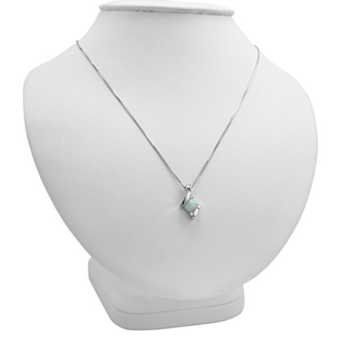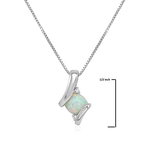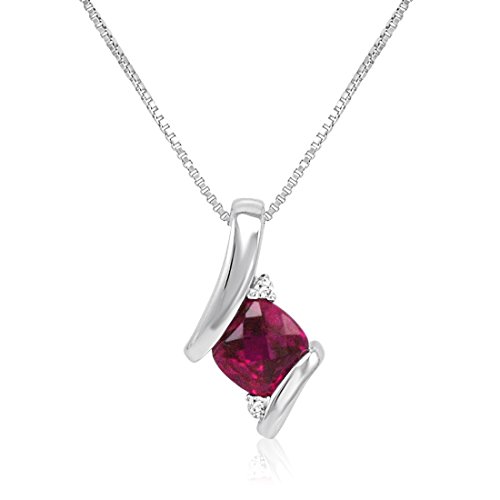 Lovely created gemstones in sterling silver with a diamond accent. These include an 18 inch sterling silver box chain. Choose from created rubiy, sapphire or opal.