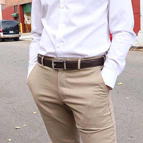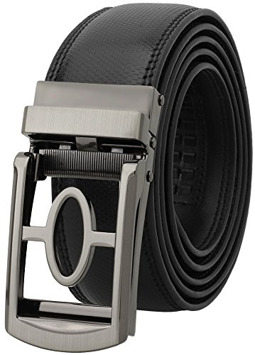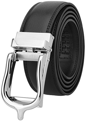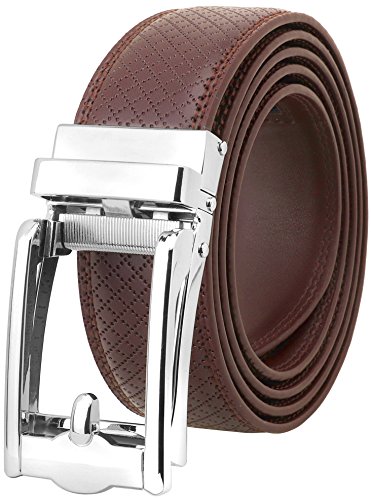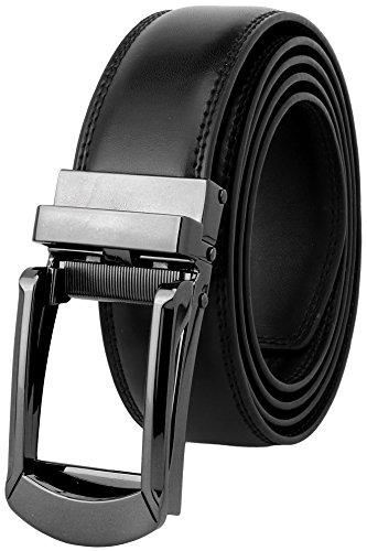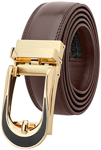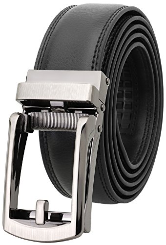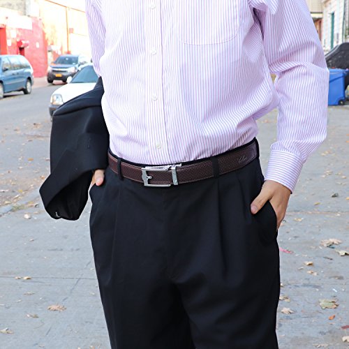 Falari Men's Genuine Leather Ratchet Click Dress Belt Automatic Sliding Buckle. Custom size trim down the strap to your exact waist size. Quality Guarantee. Simple Style Suitable for Business and Leisure