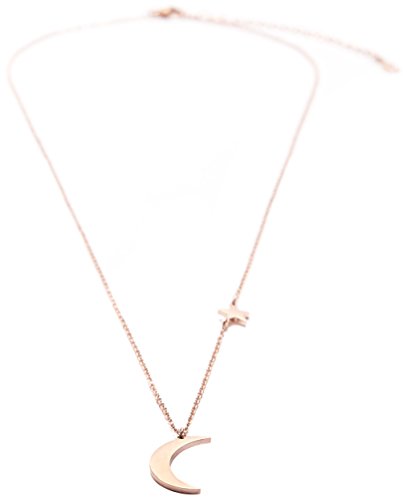 Very joyful and and delicate to wear, this necklace is made of a beautiful fine chain with a star incorporated into it and a cute and fun moon pendant hanging off of it at the bottom. This necklace will gently dangle as you walk around and it will your looks a very stylish and easy-going vibe to your outfits. Try to pair it with a plain t-shirt and a pair of skinny jeans. This article is designed by Happiness Boutique and exclusively available at our shop. This product is antiallergic. Thanks to its robust and durable materials, this piece can be worn while swimming or showering. Over time, the piece may look a bit darker. This is due to regular body contact and oil from the skin. To keep your product looks its best, use toothpaste to clean it and then rinse it off with water. This will make sure your jewellery maintains its shine for as long as possible.Feature
