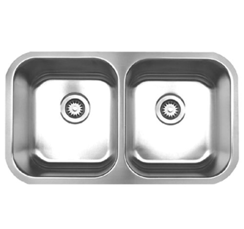 Whitehaus WHNEDB3118-BSS Noah's Collection 31-3/8-Inch Double Equal Bowl Undermount Kitchen Sink, Brushed Stainless Steel