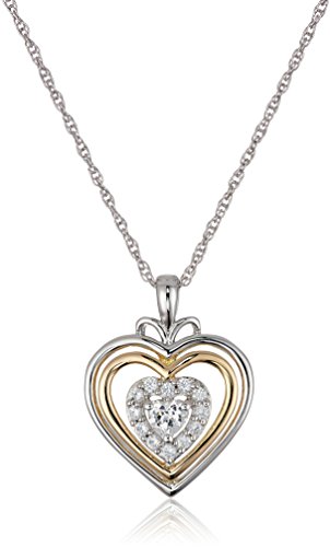 Sterling Silver Hearts and 14k Yellow Gold Plated Lab Created White Sapphire with Rope Chain Pendant Necklace, 18"