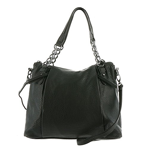 Get ready to take your look to a new height with the Jessica Simpson™ Rees Satchel. Made of polyurethane with softly pebbled detail. Zipper closure. Dual carrying handles with chain detail and detachable, adjustable crossbody strap. Exterior back slip pocket. Flat bottom. Lining made of polyester. Interior zip pocket. Two interior slip pockets. Imported. Measurements: Bottom Width: 14 in Depth: 3 3⁄4 in Height: 12 in Strap Length: 56 in Strap Drop: 25 in Handle Length: 16 in Handle Drop: 7 in Weight: 1 lb 10.8 oz This product may have a manufacturer's warranty. Please visit the manufacturer's website or contact us at warranty@support.zappos.com for full manufacturer warranty details.Feature