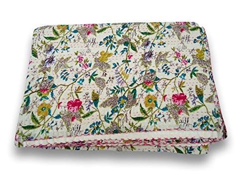 Indian Fruit Print Kantha Quilt Handmade Gudri Bedsheet Throw Cotton Bedspread 60 X 90 "