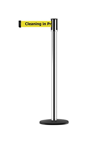 Tensabarrier - 890B-33-1S-1S-MAX-NO-YCX-C - satin chrome post, 2" wide, 13' length yellow Cleaning in Progress belt
