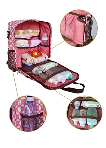 -. Feature : 21D high-density waterproof material and composite cotton material to ensure not easy be wet / Multifunctional and adjustable,free disassembly strap,change this bag to backpack,handbag,and shoulder bag / It is a multi-function bag,for Bottle,cup,diaper,cosmetics, umbrella towel and etc.Also it has a thermal insulation bag,no worry in winter / Elastic belt shrink mouth, easy to fix items / Size:18"x 7"x 8"