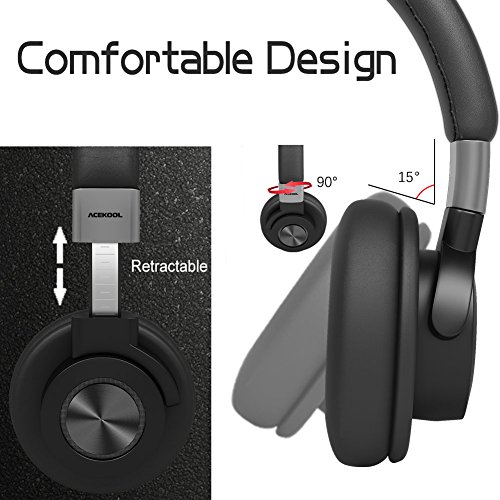 Features:ACEKOOL Bluetooth headphones over ear combines crisp treble, rich bass and superb clarity for music, Macbook, iPhone, TV, PC, gaming and more!Significant noise reduction for travel, work and anywhere. No matter how noisy the world is, it is just you and your music, simply peace and quiet.Foldable design and adjustable length hinges, easy to carry. Lightweight comfortable around-ear fit you can wear all day long.You can control all functions of music and calls easily via the buttons on the headphone after simply paired your phone with the headphones via Bluetooth. And you also have access to use the built-in microphone to chat away. Enjoy a cheerful chat with your friends.