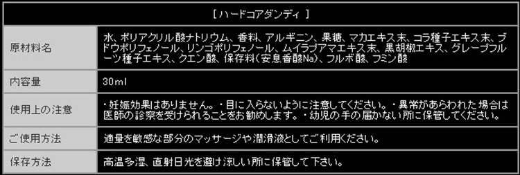 成分:水,聚丙烯酸钠,香料,精氨酸,果糖,Makaekisu端,可拉树籽提取物粉,葡萄多酚,苹果多酚,梅拉普胡麻提取物粉末,黑胡椒提取物,柚子种子提取物,柠檬酸,防腐剂(苯甲酸钠),黄腐酸,腐植酸。