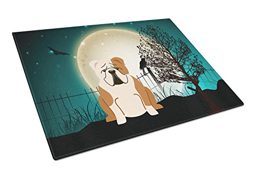 Caroline's Treasures BB2315LCB Halloween Scary English Bulldog Fawn White Glass Cutting Board, Large, Multicolor