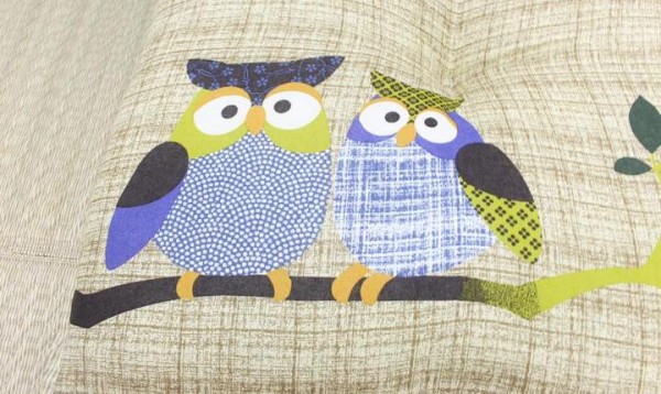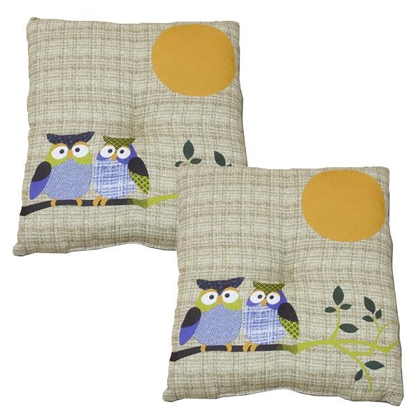 生地に、肌に優しい天然コットンを100%使用した、フクロウ柄の座布団です。