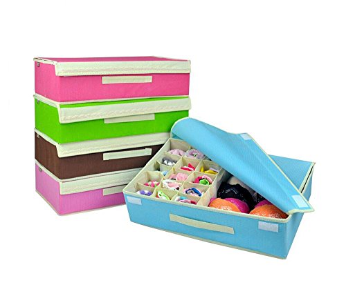 -. Feature : It comes with boards to slide into the dividers and smooth it.It can be foldable when not in use. / 15 small cells for little undergarments and 1* big cell for bras / The small compartments fit socks, knee highs, underpants, etc. The bra sorter has no dividers in it, so it is adjustable to put in your larger bras. / There is a cover to keep the stuff form dust. / Made of non-woven materia with bubble texture