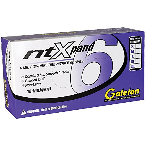 Galeton 7736P-XL 7736P Ntxpand 6 mil Nitrile Disposable Gloves, Powdered, Violet, Box of 100, X-Large