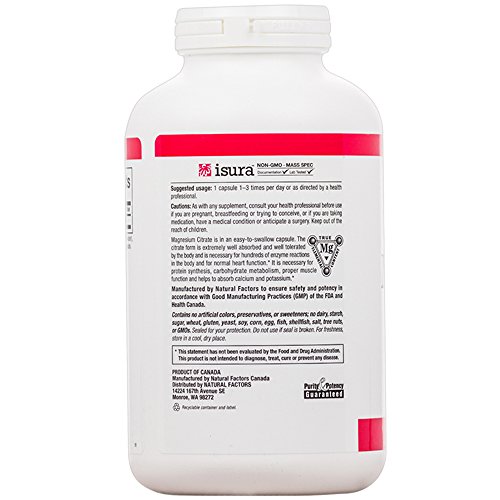 EASILY ABSORBED: Natural Factors Magnesium Citrate is in an easy-to-swallow capsule. The citrate form is extremely well absorbed and well tolerated by the body and supports hundreds of enzyme reactions in the body and promotes normal heart function.