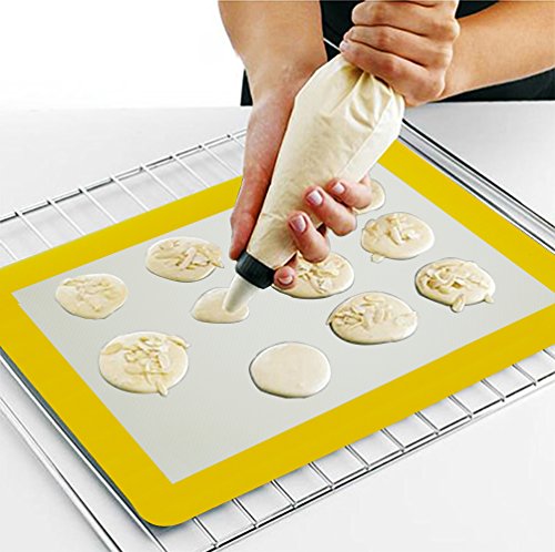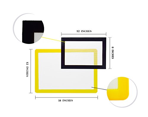 Baking Mat Pastry Sheets Rolling Set Bread/Dough/Macaroon/Fondant/Cookies/Pie Crust Liner Counter Non Stick Silicone with Measurements 17”+12”,2Pcs (Black+Yellow)