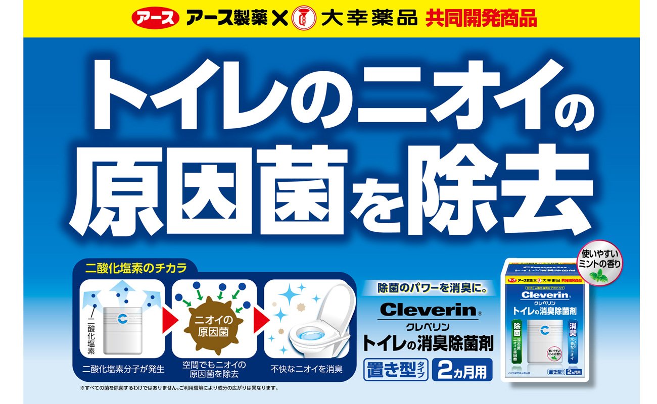 - Chlora dioxide floating in the toilet space, adhering bacteria in the place where the hands touch, causative bacteria of the odor are also removed.