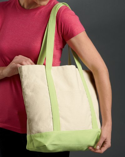 Product Description100% cotton canvas; contrasting 25 handles and bottom; open main compartment; front outside pocket; "0