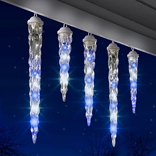 8-Light Icy Blue/White Shooting Star Varied Size Icicle Light Set