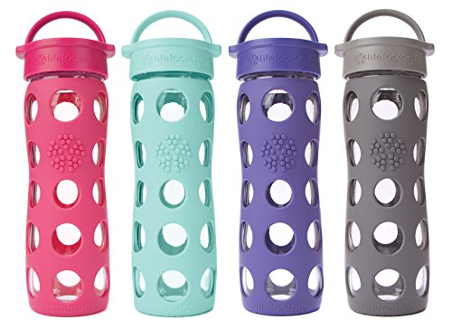 16-ounce reusable glass beverage bottle with protective silicone sleeve and leakproof Classic Cap for secure transport; fits well in car cup holders