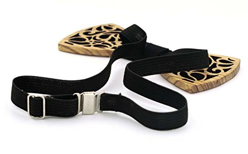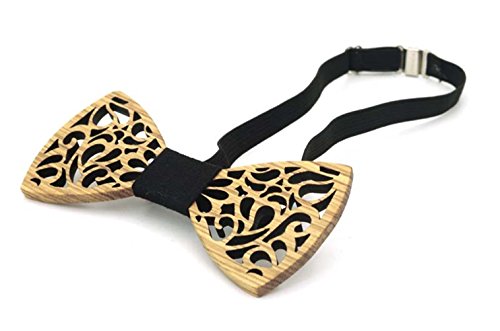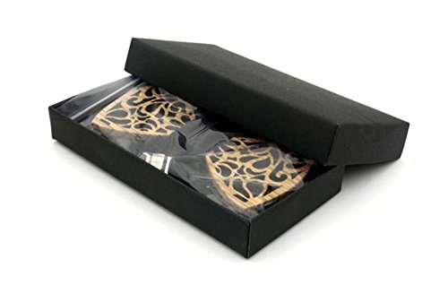 (Moqing)/Accessories/Ties/DIRECT FROM USA/Men’s Retro Handmade hollow carved wooden bow tie with Gift Box, BUY ONE GET ONE FREE