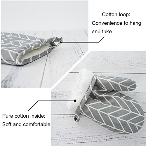 - EASY TO CLEAN AND STORE---Machine washable and don’t worry it get dirty or greasy. Each pair of oven mitts with a cotton loop inside so they can be hung in wall hook. Quickly to find and take it, won’t take up space.
