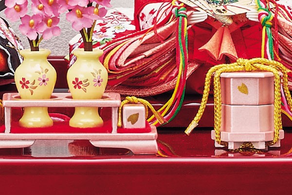親御様、お子様、縁者様の健康と発展を願いながら職人が丁寧に仕上げた雛人形飾り/雛人形が初節句のお祝いにはなを添えます。