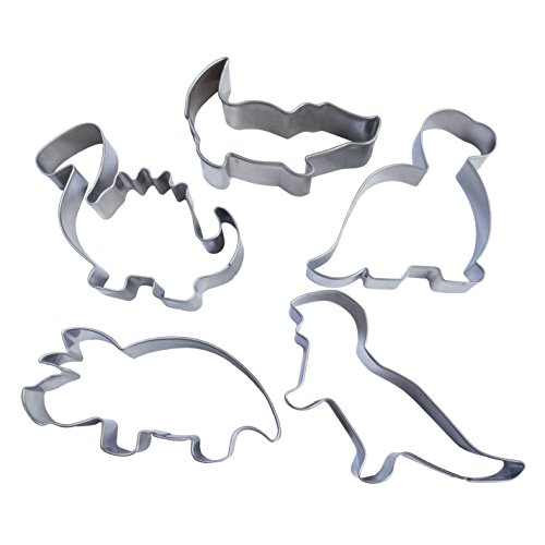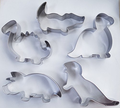 Yunko 5pcs Prehistoric Dinosaur Stainless Steel Cookie Cutter Fondant Cutter Cake Decorating Tools Tyrannosaurus Rex Brontosaurus Triceratops Crocodile