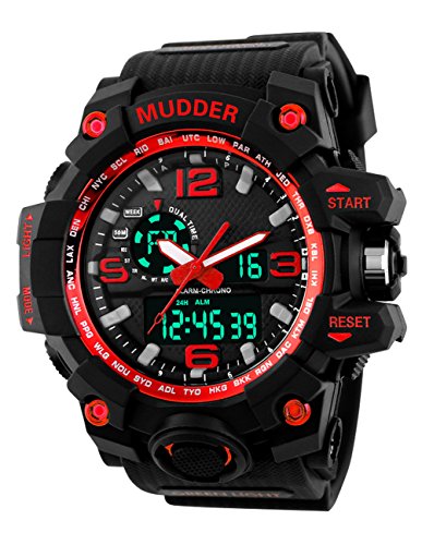 -. Binding : Watch -. Brand : Mudder -. Color : Red -. Department : Mens -. EAN : 0713072673989 -. Feature : Japan original digital movement / ABS plastic case with PU rubber strap / 50 m waterproof sport watch (please do not press any buttons under water and avoid using it in extreme hot or cold temperature) / A good present for your friends / Come with present box -. Label : Mudder -. Manufacturer : Mudder -. MPN : Mudder-Wrist Watch-01 -. PartNumber : Mudder-Wrist Watch-01 -. ProductGroup : Watch -. ProductTypeName : WATCH -. Publisher : Mudder -. Studio : Mudder -. Title : Mudder 5.5 cm/ 2.17 inch Big Dial Analog Digital Outdoor Sport Men Wrist Watch, Red -. UPC : 713072673989