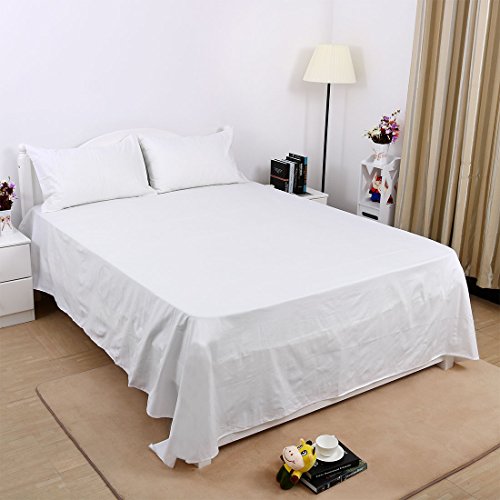 uxcell Full Size Flat Top Bed Sheet Only - 300 Thread Count Egyptian Cotton - Fitted Sheet Sold Separately for Set - Cool Feeling-100% Satisfaction Guarantee (1-Piece, Full, White)(96 x 81Inch)