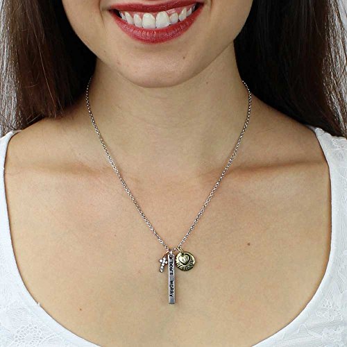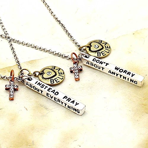 -. Title : Simple Truths 'Don't Worry About Anything Instead Pray About Everything' Pendant Necklace - Three Tone Charm Necklace With Delicate Crystal Cross And Engraved Heart - Great Sports Fan Pendant Gift