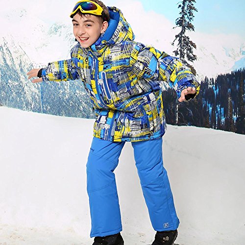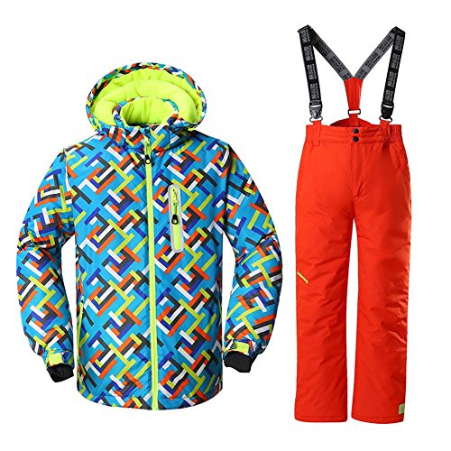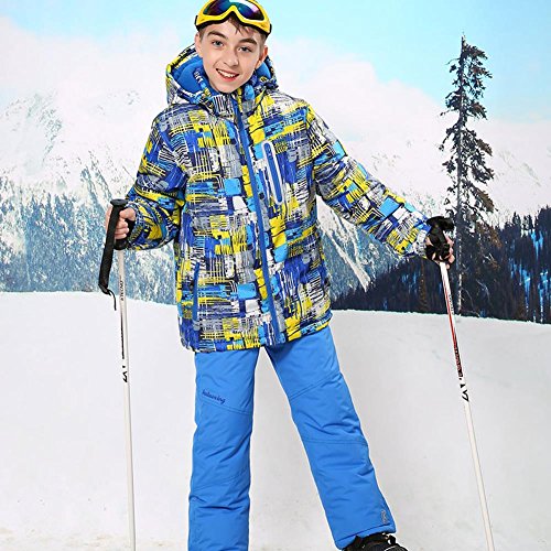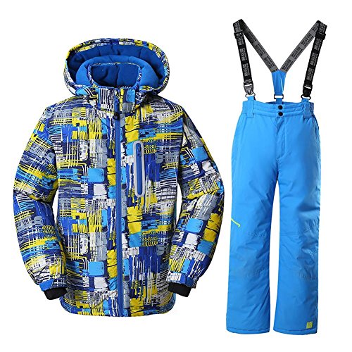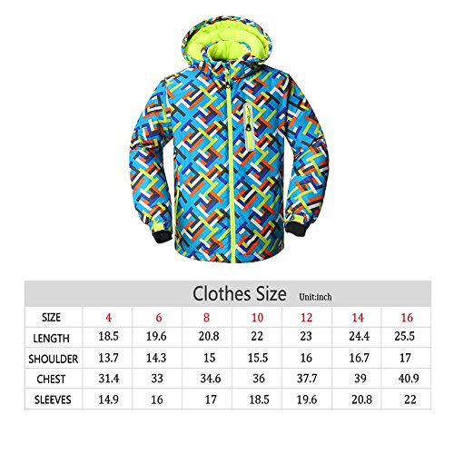 Binding : Apparel Product Description This ski suit designed for boys, use the high windproof and waterproof technology, which has a good waterproof, windproof performance, also this snow jacket and pants set are breathable, wear-resisting, heat preservation. It should be your best choice for winter outdoor activities. Please refer to the size chart before purchase and allow some color difference due to the light and computer screen display. About Size Jacket Size US 4: Length 47CM/18.5', Shoulder 35CM/13.7', Chest 80CM/31.4', Sleeves 38CM/14.9' US 6: Length 50CM/19.6', Shoulder 36.5CM/14.3', Chest 84CM/33', Sleeves 44CM/16' US 8: Length 53CM/20.8', Shoulder 38CM/15', Chest 88CM/34.6', Sleeves 44CM/17' US 10: Length 56CM/22', Shoulder 39.5CM/15.5', Chest 92CM/36', Sleeves 47CM/18.5' US 12: Length 59CM/23', Shoulder 41CM/16', Chest 96CM/37.7', Sleeves 50CM/19.6' US 14: Length 62CM/24.4', Shoulder 42.5CM/16.7', Chest 100CM/39', Sleeves 53CM/20.8' US 16: Length 65CM/25.5', Shoulder 44CM/17', Chest 104CM/40.9', Sleeves 56CM/22' Pants Size US 4: Length 56CM/25.9', Waist 55CM/21.6',Hem 18.6CM/7.3' US 6: Length 71CM/27.9', Waist 58CM/22.8',Hem 19.3CM/7.5' US 8: Length 76CM/29.9', Waist 62CM/22.4',Hem 20CM/7.8' US 10: Length 81CM/31.8', Waist 66CM/25.9',Hem 20.7CM/8.1' US 12: Length 86CM/33.840.2', Waist 70CM/27.5',Hem 21.4CM/8.4' US 14: Length 91CM/35.8', Waist 74CM/29',Hem 22.1CM/8.7' US 16: Length 96CM/37.7', Waist 78CM/30.7',Hem 22.8CM/8.9'