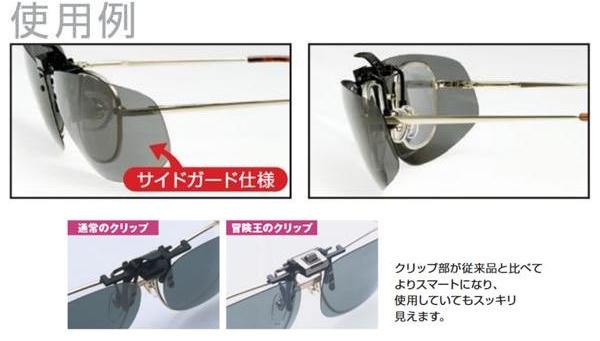 便利な跳上機能付きのクリップオン&眼鏡対応サングラスです。クリップが従来品と比べてよりスマートになり、使用していても邪魔にならずスッキリ見えます。メガネの横の隙間から入る光・雨・風などをシャットアウトするサイドガード仕様。 |