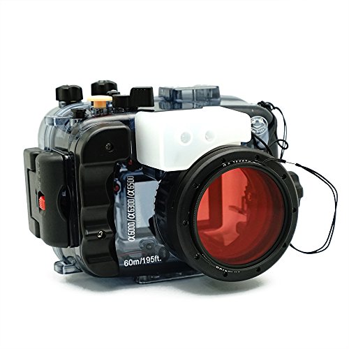 For Sony A6500 A6300 A6000 [ILCE-6500/6300/6000] 195FT/60M Underwater camera diving waterproof housing(Housing + Cover + Red Filter)