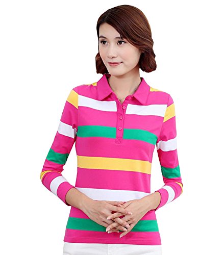 -. Title : FEVON ポロシャツ レディース 長袖 Tシャツ 春 秋 冬 トップス カットソー カジュアル スポーツウェア ボーダー柄 配色 折り襟 おしゃれ ゴルフウェア スリム ストレッチ スキッパー 通勤 オフィス制服 事務服 大きいサイズ