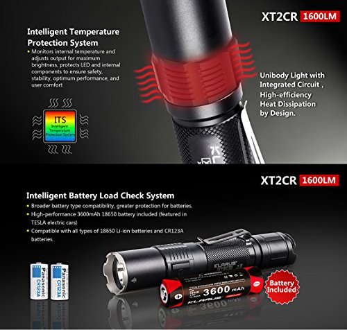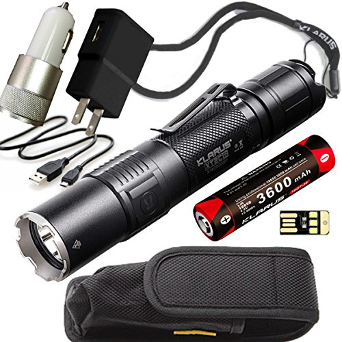 Klarus XT2CR SUPER BUNDLE Includes 1600 Lumen Tactical Flashlight, 18650 Battery, Holster, Car Charger, Wall Charger, USB Cable, Lanyard, and Mini USB Light