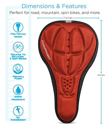 Aduro Sport Bike Seat Memory Foam Cushion Cover Pad for Bicycle Seat Saddle, No Installation Needed, Bounce Free - Enjoy Longer Rides, Water Resistant
