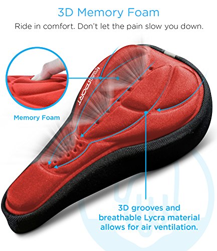 Enjoy longer rides - Memory Foam Bicycle Seat Cushion with extra padding for comfort, no more pain!