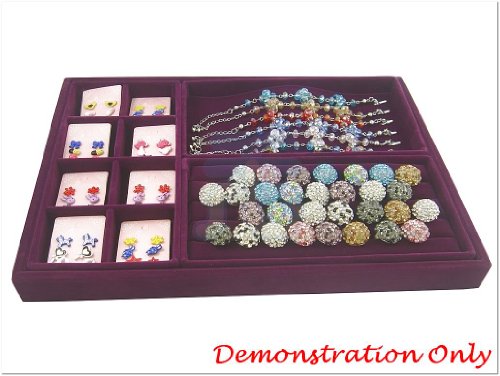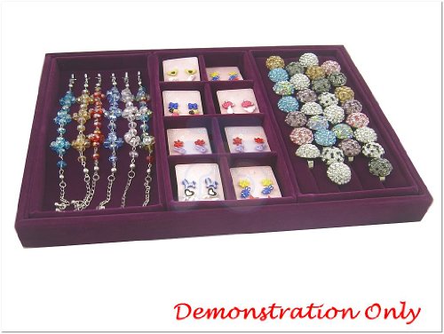 -. Feature : Feature: 8 compartments / This inner tray is design for our utility tray (DSBRCA0001), it offers endless possibilities to display your precious jewelry. / 3 inner trays can fit our utility tray (DSBRCA0001) like the last two pictures shown. / Color: Purple; Size: 22.2 x11.1x2.7cm (8.7"x 4.3"x 1" inches) / Material: cardboard and purple velvet.