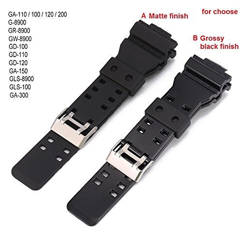 -. Feature : Resin rubber silicone replacement watch band has two style,black matte finish and glossy black finish / Lug Width/Band Width: 16mm/29mm / Carty replacement watch band for Fits: G8900-1 GA100-1A1 GA100-1A2 GA100-1A4 GA100C-1A3 GA100C-1A4 GA110-1A GA110-1B GA120-1A GA120BB-1A GA300-1A GAC100-1A GAC100-1A2 GD100-1A GD100-1B GDF100-1A GDF100-1B GDF100BB-1 GR8900-1 GR8900A-1 GW8900-1 GW8900A-1 / This is not fit for other size , if you do not know whether fits or not ,please feel free to leave us a message. If the size do not fit perfet , you can return to us .We will give you full refund. But please do not give negative feedback. / Package 1*Watch Strap, 1*Removal tool, 2*sP.R.Ing bars, 1*gift bag