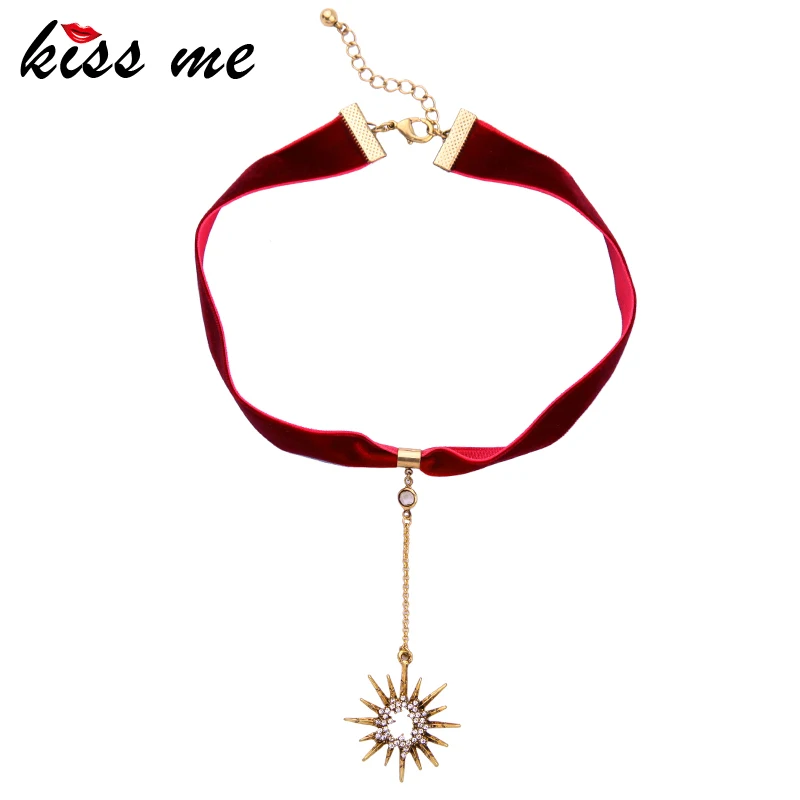 Production name ::KISS ME Trendy Crystal Stars Pendant Red Ribbon Choker Necklace