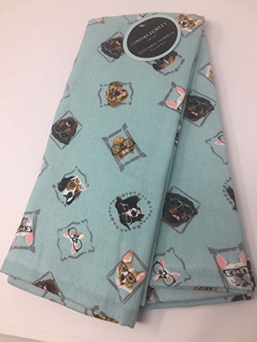 Cyntina Rowley Blue Dogs in Glasses Set of 2 Kitchen Towels - Terry Cloth Backed
