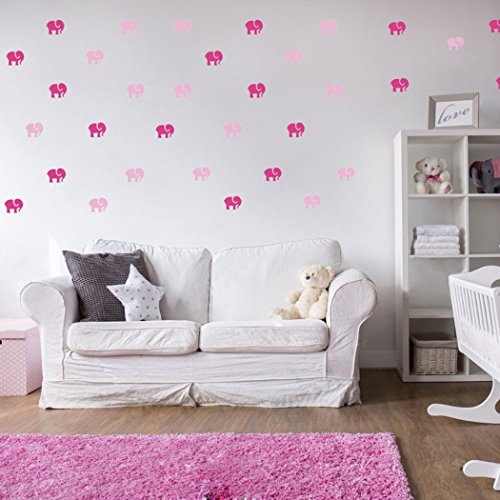 KoalaBear Brand Wall Decal Pink Elephants Peel & Stick Removable Wall Sticker For Children Nursery/Bedroom/Playroom, 27 PCS
