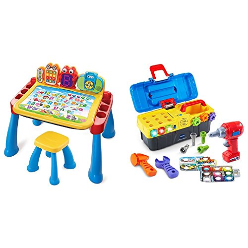 Fix and play with the Drill and Learn Toolbox by VTech; open this toddler-friendly toolbox and get ready for role-play fun with the included electronic fix-it tray, working toy drill, hammer, wrench, nails and screws
