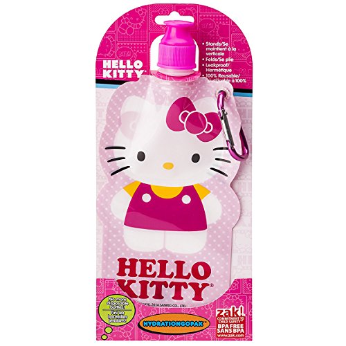 Hydration GoPaks are the best, most portable water bottles that fold or roll up, and Hello Kitty makes them fun! Unlike bulky bottles or wasteful disposable ones, these are refillable to expand and stand right up, ready to refresh with a pop top cap, and clip to a bag for portability.