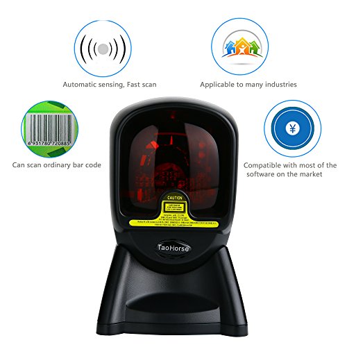 TaoHorse Omnidirectional Barcode Scanner Desktop High Speed 1D Bar Code Reader with Hands Free Adjustable Stand and USB Cable