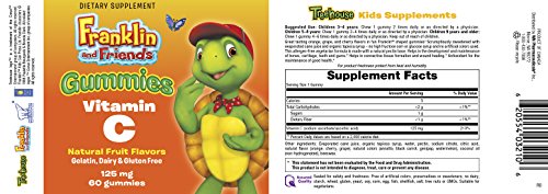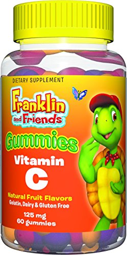 -. Feature : Provides 125 mg of vitamin C in each yummy gummy / Fun packaging featuring Franklin & Friends Treehouse characters / 3 delicious flavours - orange, grape, and cherry / Made with non-GMO ingredients / Free from artificial colours, sweeteners, hydrogenated oils, and common food allergens such as gluten, wheat, tree nuts, soy, corn, and dairy