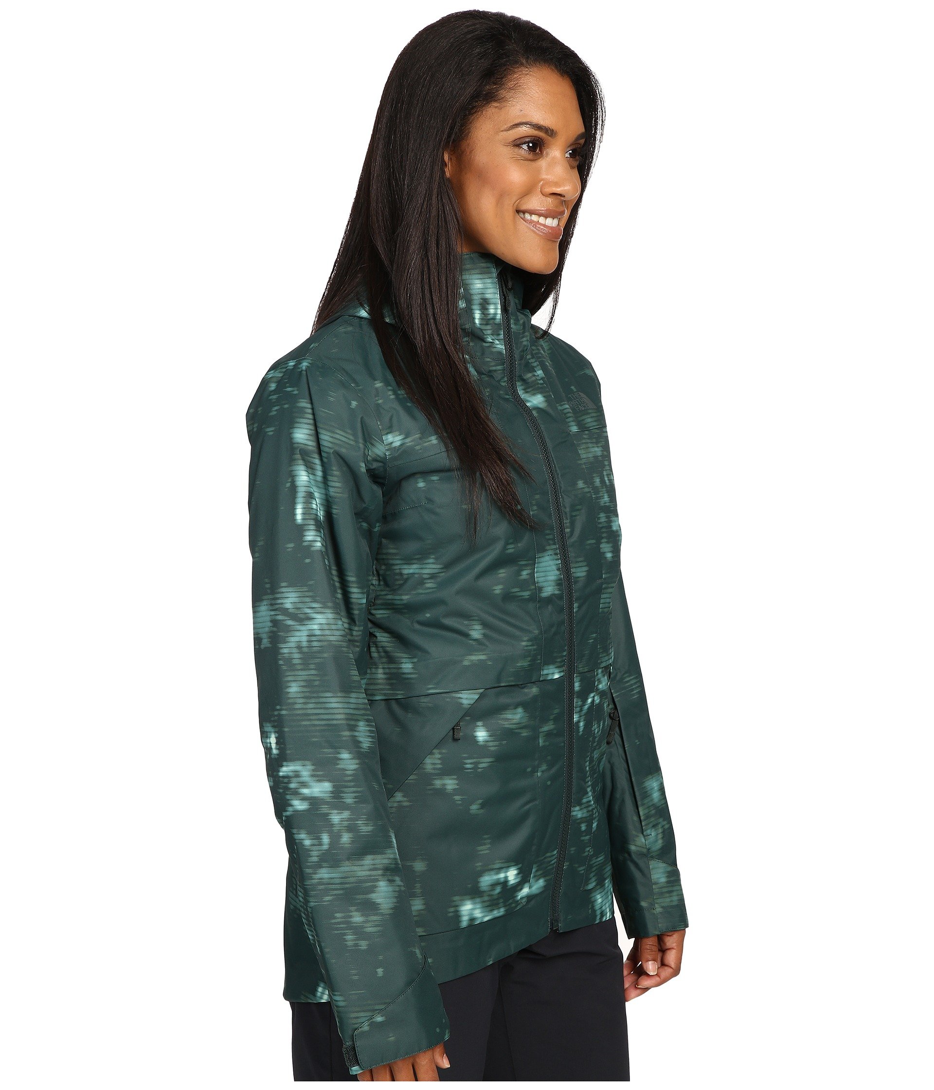 | Product Information SKU: #8761705Hit the slopes in this waterproof and windproof freeride shell.Exterior fabric features a durable, waterproof outer layer paired with a breathable, polyurethane-coated inner layer that allows water vapor to escape.Adjustable hood extends protection.Storm flap inside full-zip front closure.Long sleeves sport hook-and-loop adjustable cuffs.Multiple pockets.Interior media-friendly pocket with headphone cable port.Reflective logos increase visibility in low-light conditions.Straight hemline.Solid: Shell: 100% nylon 2L DryVent™; Lining: 100% recycled polyester. Print: Shell: 100% polyester 2L DryVent™; Lining: 100% recycled polyester. Heathered: Shell: 55% nylon, 45% polyester 2L DryVent™; Lining: 100% recycled polyester.Machine wash warm, tumble dry low.Imported.Product measurements were taken using size XS. Please note that measurements may vary by size.Measurements: Length: 29 1?2 in |