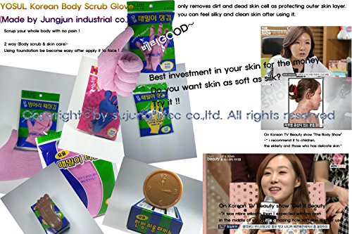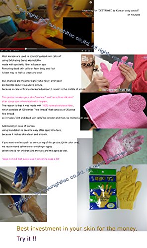 [Highly addictive shower Glove!!] [Made with 100% natural cellulose fiber!!] -Once gently rub in, dead skin cells, wastes, sebums, blackheads are removed easily. -you can feel silky and clean skin as Bathing in hot springs just by taking a quick shower. Don't worry on coarse skin once you use it. -scrub off dirt and dead skin cell without skin damage and trouble. -in order to scrub off dirt and dead skin cell, you don't need to soak body in water. just use it with soap. -Apply a lot of soaps to the glove and make lots of foam.(please use it with only soap)Feature